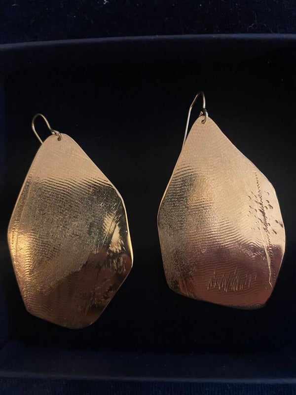 Handgesmede oorhangers verguld in 18karaat geel goud